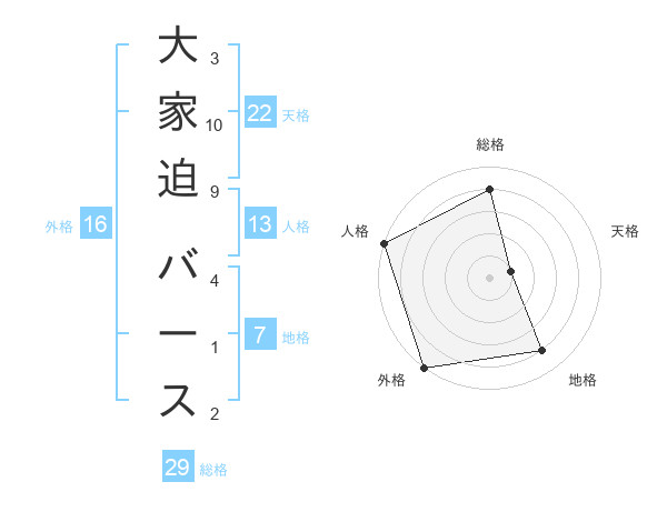 大家迫 バースさんを姓名の画数から五運を鑑定