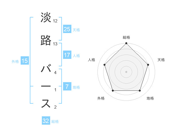 淡路 バースさんの総格は32画の5点!