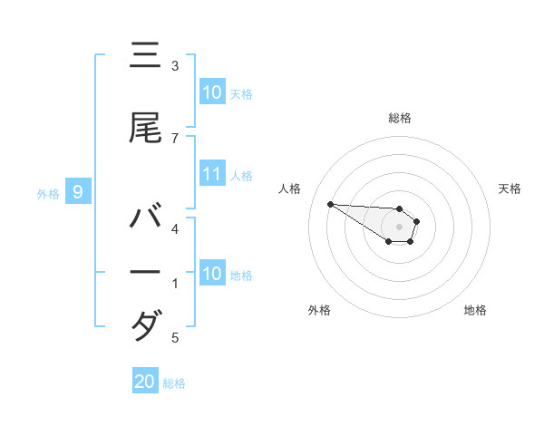 三尾 バーダさんの総格は20画の1点!