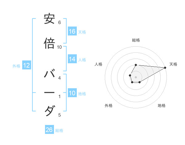 安倍 バーダさんを姓名の画数から五運を鑑定