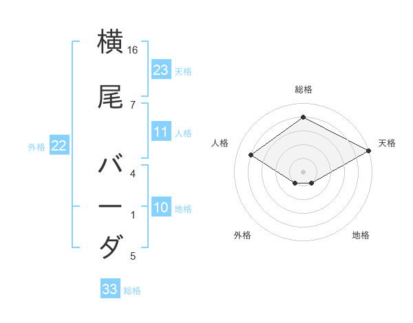 横尾 バーダさんを姓名の画数から五運を鑑定
