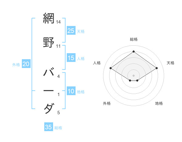 占い結果は姓名判断である以上、良い場合も悪い場合もありますが、決してお名前を誹謗中傷するものでなく、画数の自動計算によって得られたものです。また、本サイトの検索によって得られた鑑定結果で、第三者を誹謗中傷したり名誉を棄損するような行為を禁じます。