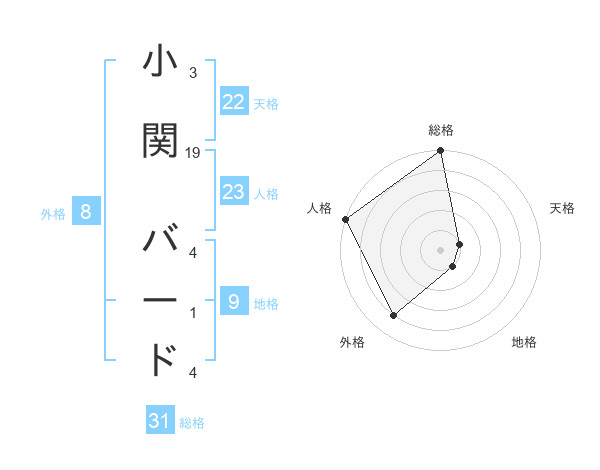 小関 バードさんの総格は31画の5点!