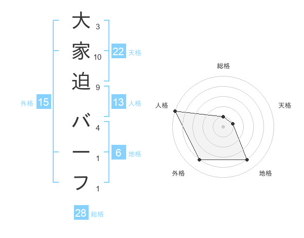 大家迫 バーフさんの総格は28画の1点!