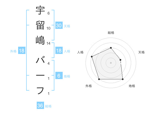 宇留嶋 バーフさんの総格は36画の3点!