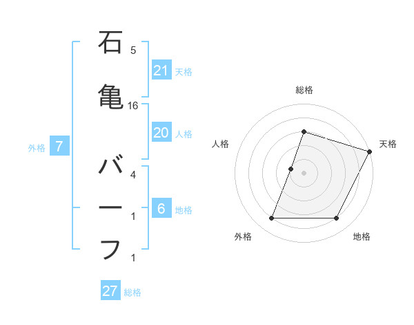 石亀 バーフさんを姓名の画数から五運を鑑定