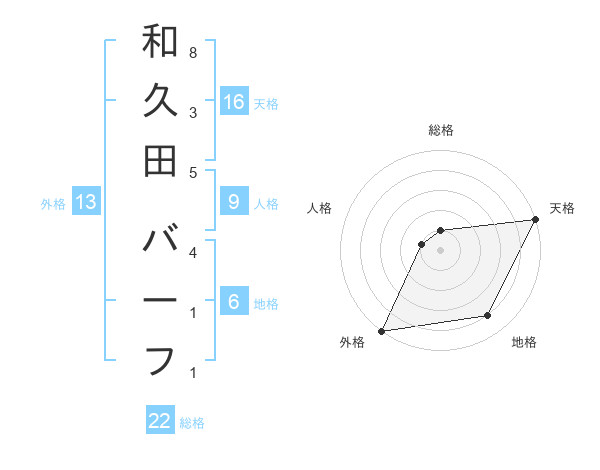 和久田 バーフさんを姓名の画数から五運を鑑定