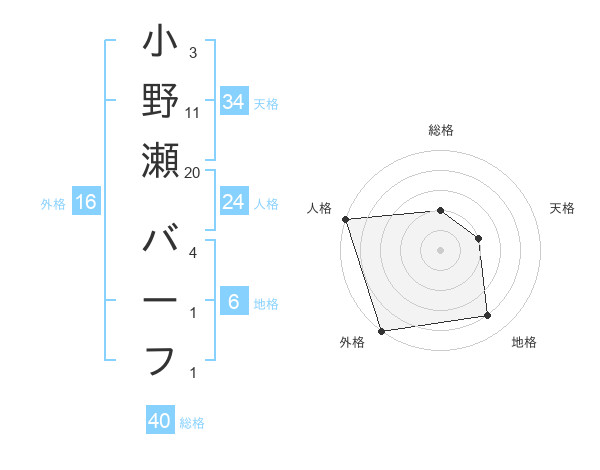 小野瀬 バーフさんを姓名の画数から五運を鑑定