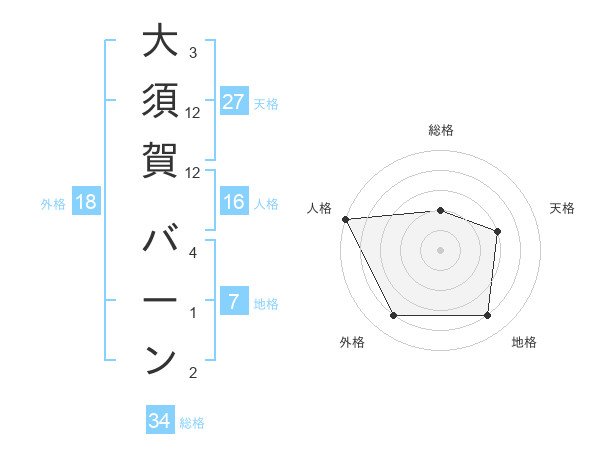 大須賀 バーンさんの天格は27画の3点!