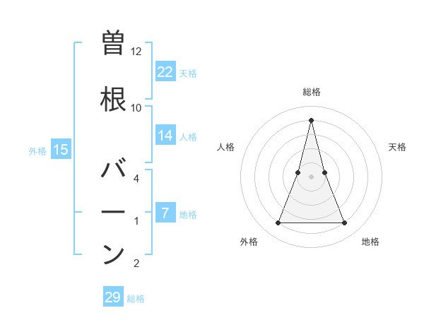 曽根 バーンさんを姓名の画数から五運を鑑定