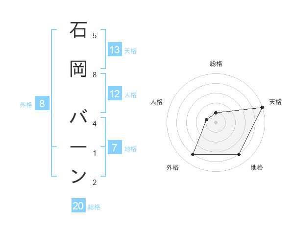 石岡 バーンさんの天格は13画の5点!