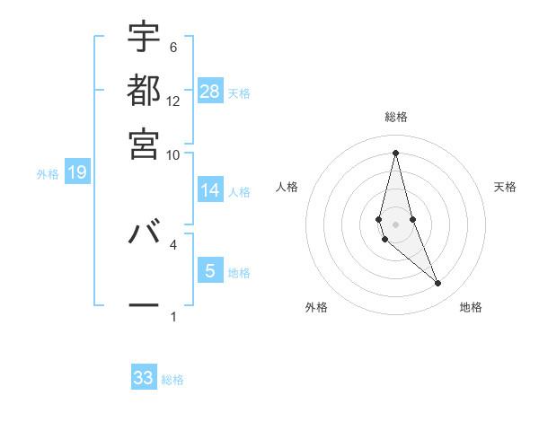 宇都宮 バーさんを姓名の画数から五運を鑑定