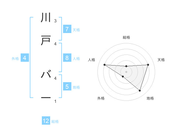 川戸 バーさんの総格は12画の1点!