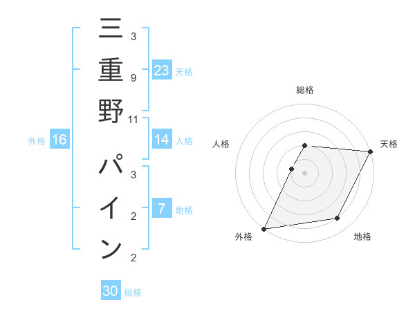 三重野 パインさんの天格は23画の5点!