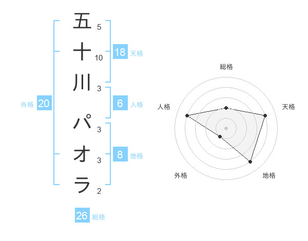 五十川 パオラさんを姓名の画数から五運を鑑定