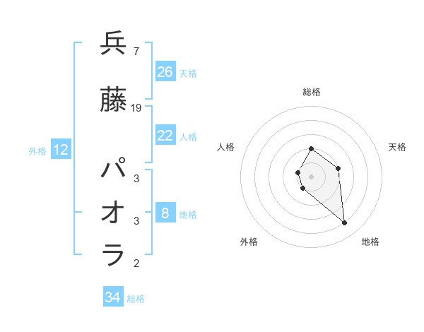 兵藤 パオラさんを姓名の画数から五運を鑑定