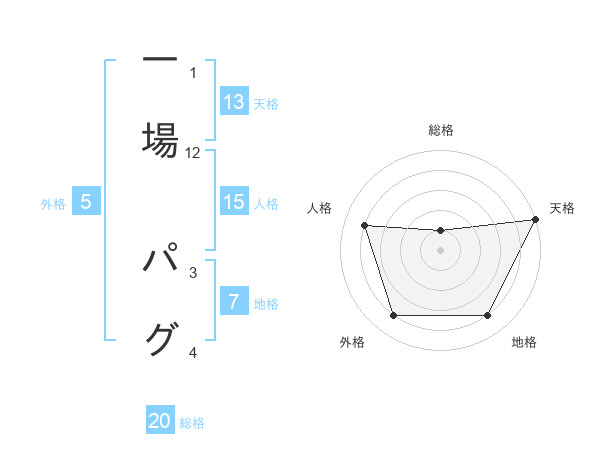 一場 パグさんの天格は13画の5点!