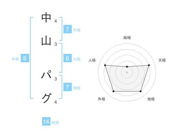 中山 パグさんの総格は14画の1点!