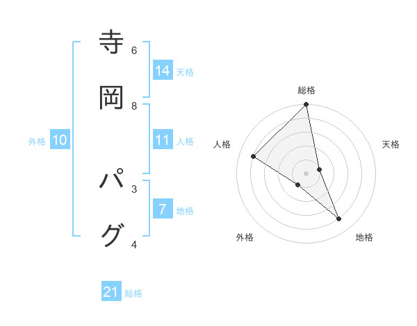 寺岡 パグさんの総格は21画の5点!