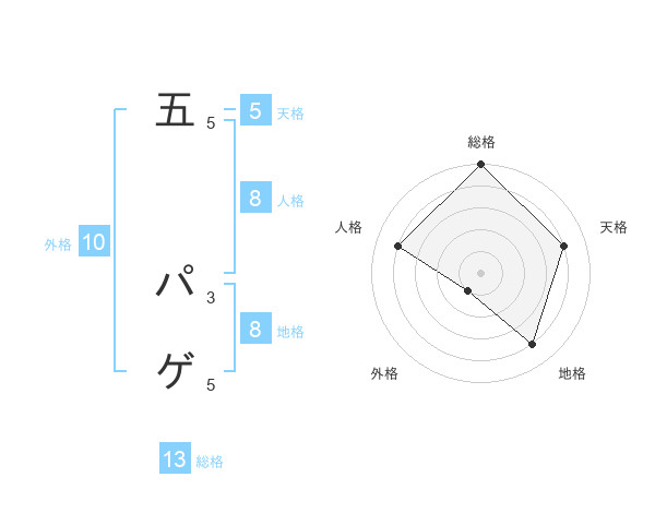 五 パゲさんの総格は13画の5点!