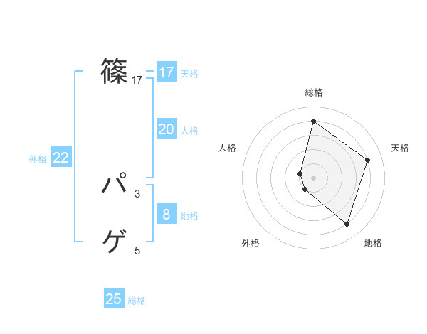 篠 パゲさんの外格は22画の1点!