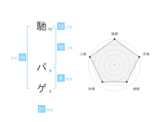 馳 パゲさんの総格は21画の5点!