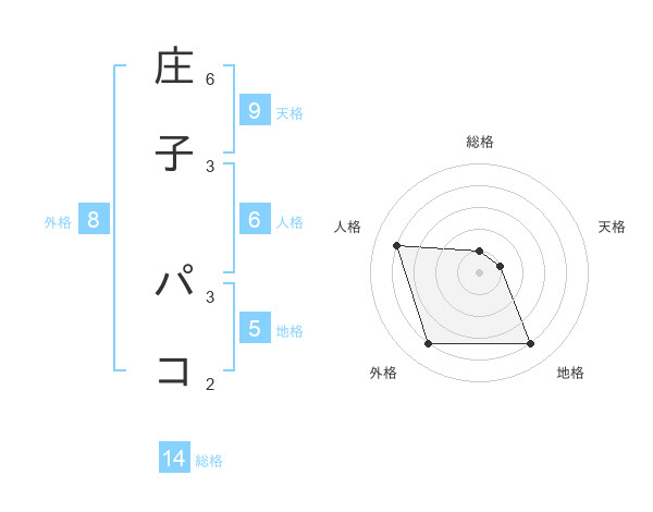 庄子 パコさんの総格は14画の1点!