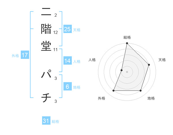 二階堂 パチさんの総格は31画の5点!