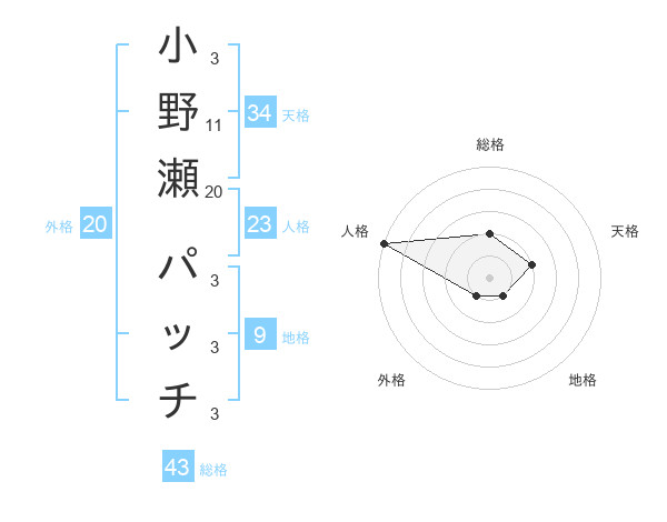 小野瀬 パッチさんを姓名の画数から五運を鑑定