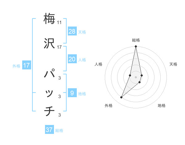 梅沢 パッチさんを姓名の画数から五運を鑑定