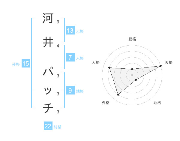 河井 パッチさんの総格は22画の1点