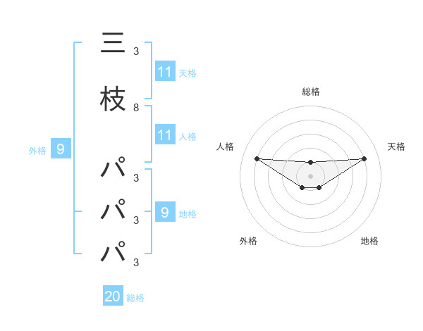 三枝 パパパさんの天格は11画の4点