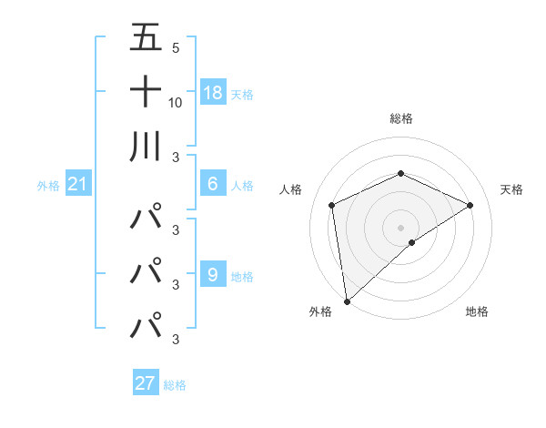 五十川 パパパさんを姓名の画数から五運を鑑定