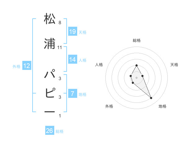 松浦 パピーさんを姓名の画数から五運を鑑定