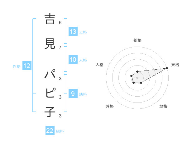 吉見 パピ子さんの天格は13画の5点!