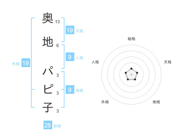 奥地 パピ子さんを姓名の画数から五運を鑑定