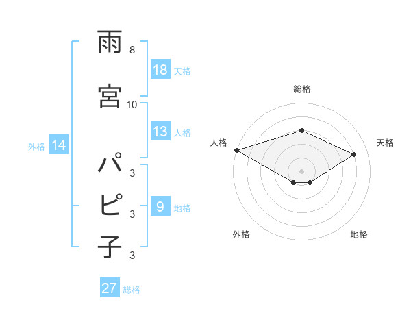 雨宮 パピ子さんの総格は27画の3点!