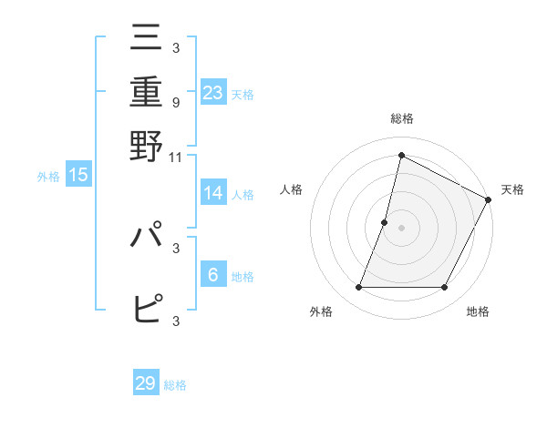 三重野 パピさんの総格は29画の4点!
