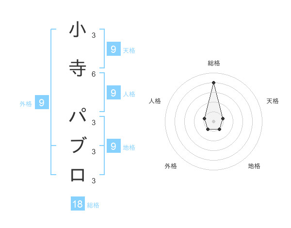 小寺 パブロさんの地格は9画の1点!