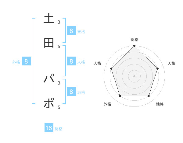 土田 パポさんの天格は8画の4点!