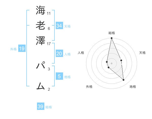海老澤 パムさんの総格は39画の5点