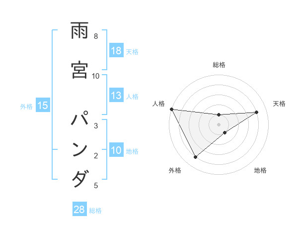雨宮 パンダさんの天格は18画の4点