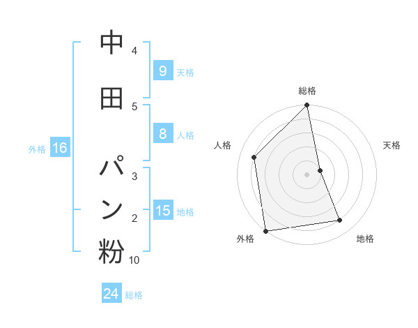 中田 パン粉さんを姓名の画数から五運を鑑定