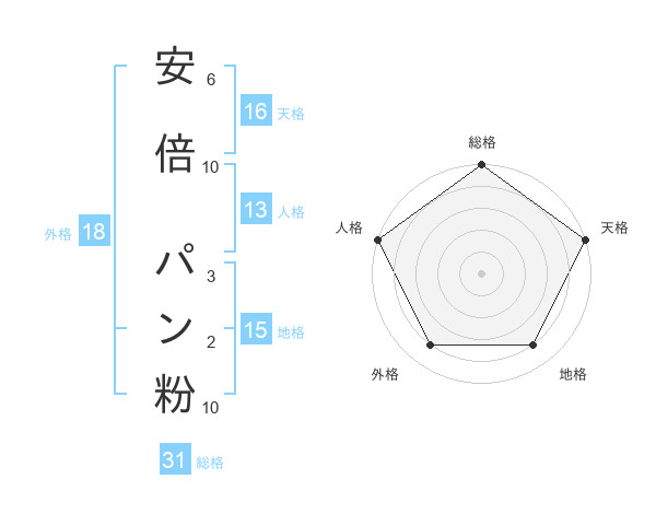 安倍 パン粉さんを姓名の画数から五運を鑑定