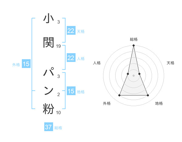 小関 パン粉さんの総格は37画の5点!