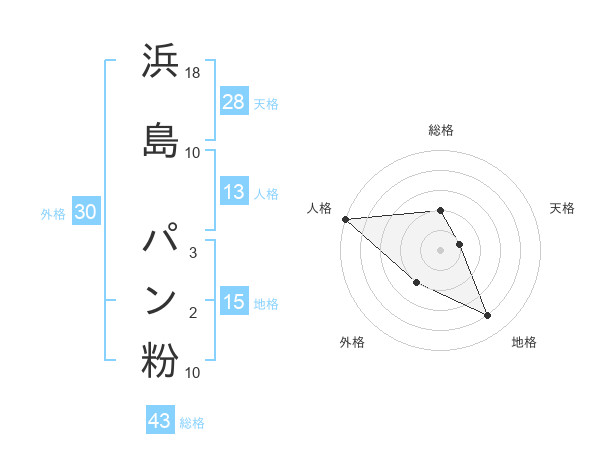 浜島 パン粉さんの地格は15画の4点