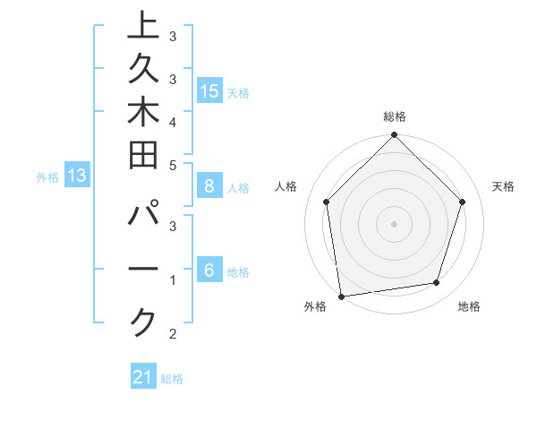 上久木田 パークさんを姓名の画数から五運を鑑定