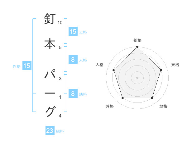 釘本 パーグさんを姓名の画数から五運を鑑定