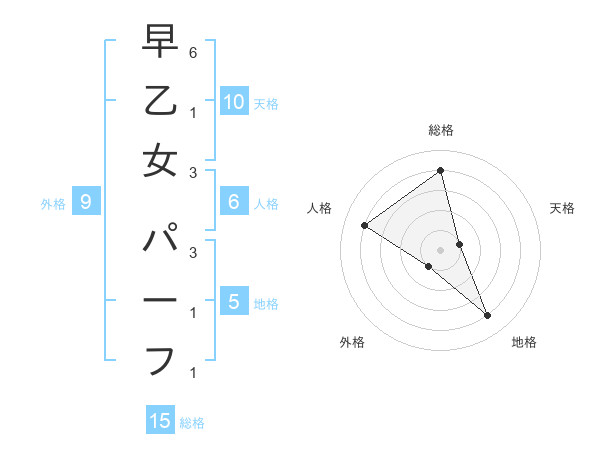 早乙女 パーフさんを姓名の画数から五運を鑑定