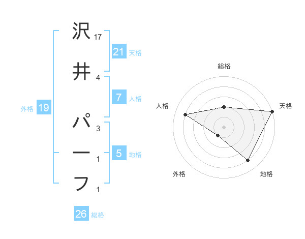 沢井 パーフさんの地格は5画の4点!